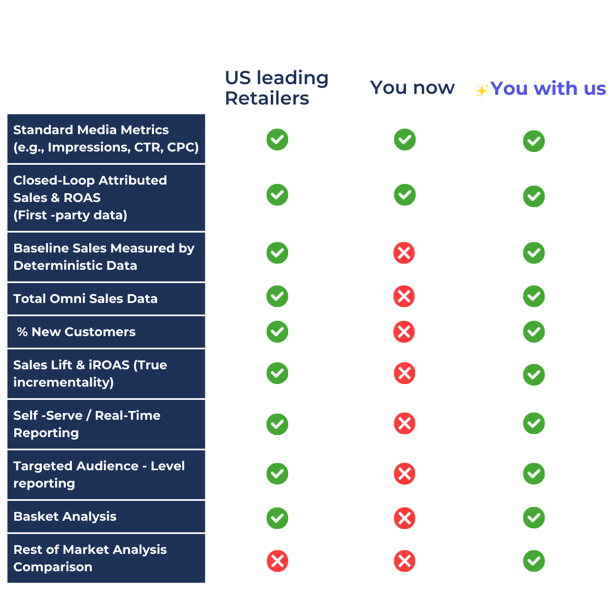 Say goodbye to complicated reports and hello to incremental measurement that drives real growth and proves your retail media’s impact.